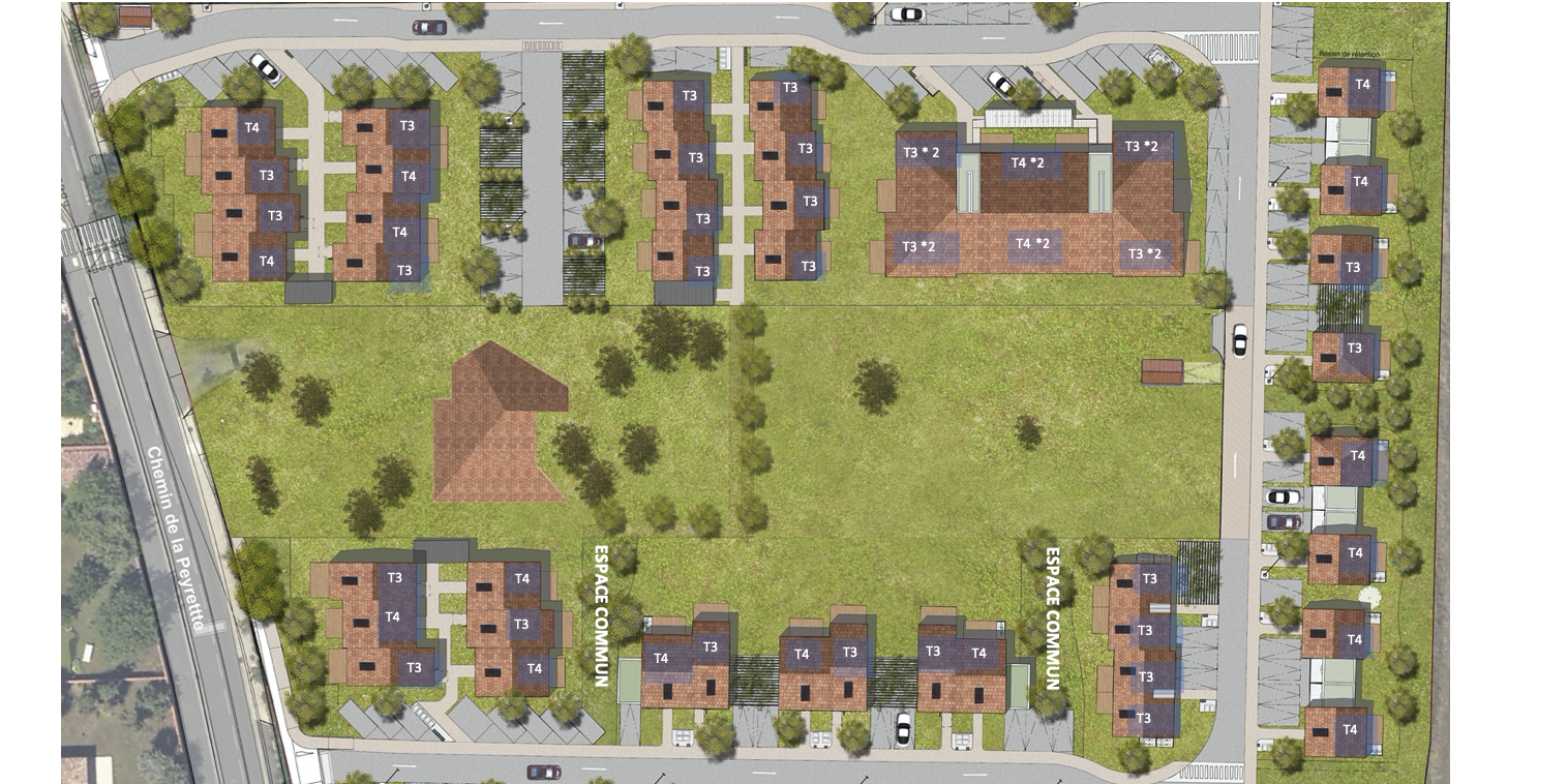 Perché sur les hauteurs de Tournefeuille, un projet unique de 52 logements dont 40 villas avec de nombreuses typologies pour toutes les envies et les budgets. Une voirie en espace partagé, à sens unique qui sera rétrocédée à la métropole, des jardins confortables, des espaces communs conviviaux, c'est un véritable projet de promotion à l'image d'un lotissement.