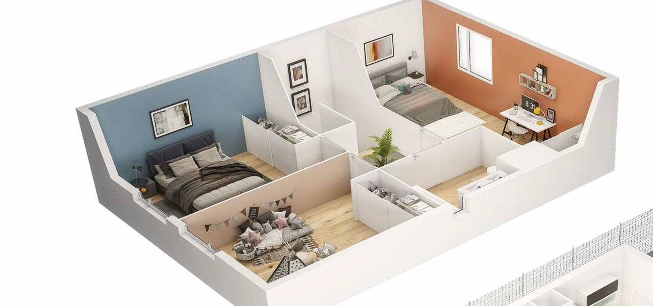 - de penderie et d'étagères dans chacune des chambres.
