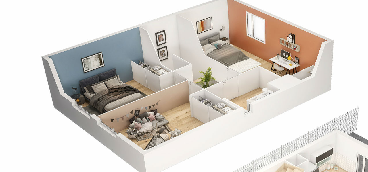 Sol des chambres revêtu de parquet bois stratifié de couleur claire.