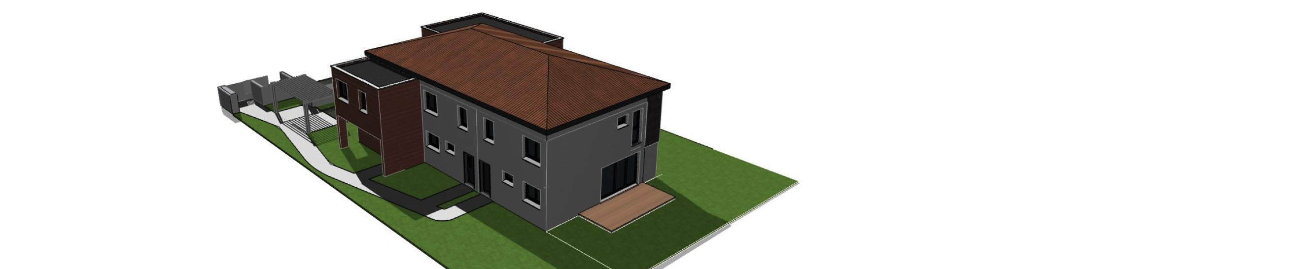 La projet est composé de 4 villas au sein d'un seul bâti, associe les lignes contemporaines d'un Architecte de renom et les moyens techniques performants de construction permettant d'atteindre la norme RT 2012.