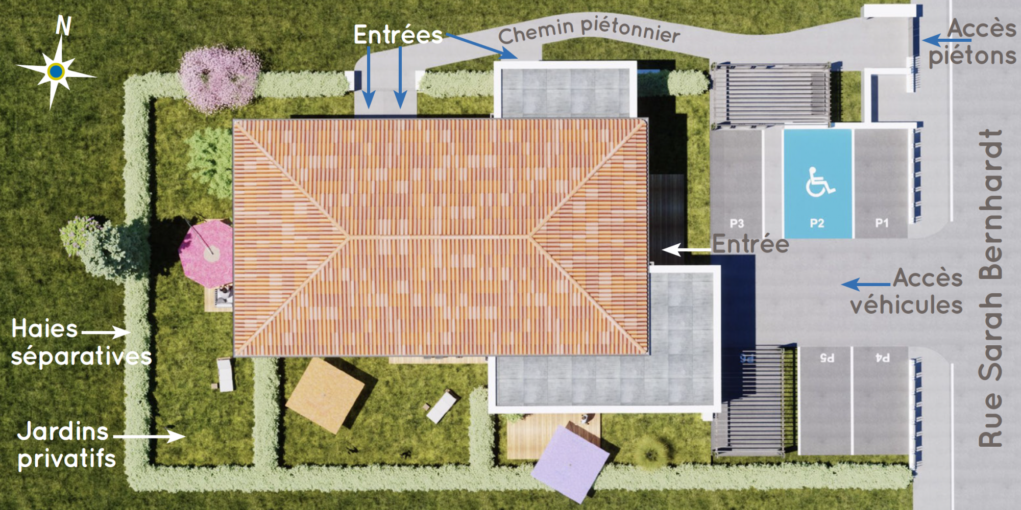 Chaque villa dispose de la pleine propriété de son jardin